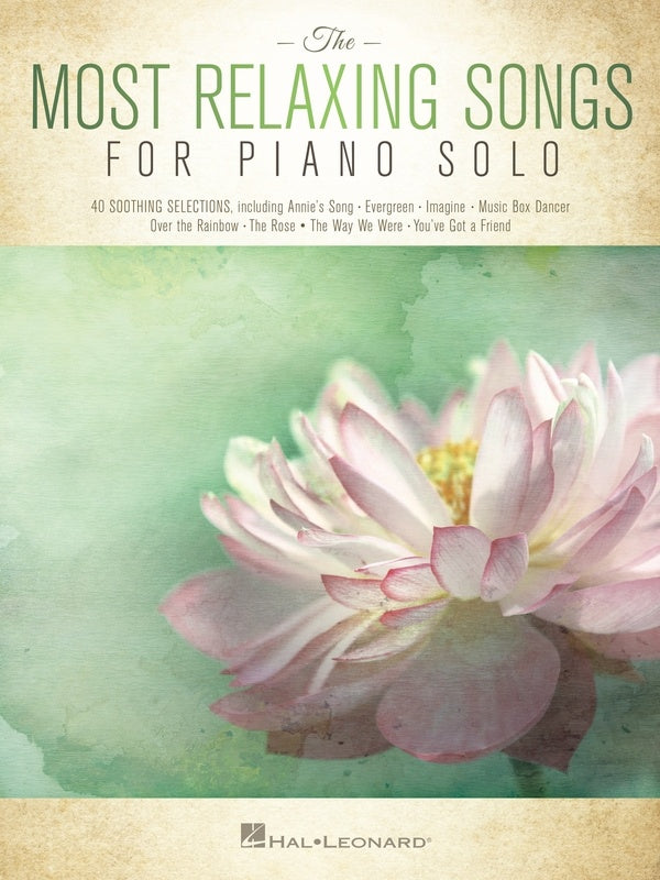 40 soothing selections arranged for piano solo, including: Annie's Song • Brian's Song • Cristofori's Dream • Evergreen • Fields of Gold • Gabriel's Oboe • Imagine • Music Box Dancer • Over the Rainbow • The Rose • A Time for Us (Love Theme) • The Way We Were • You've Got a Friend • and more.
