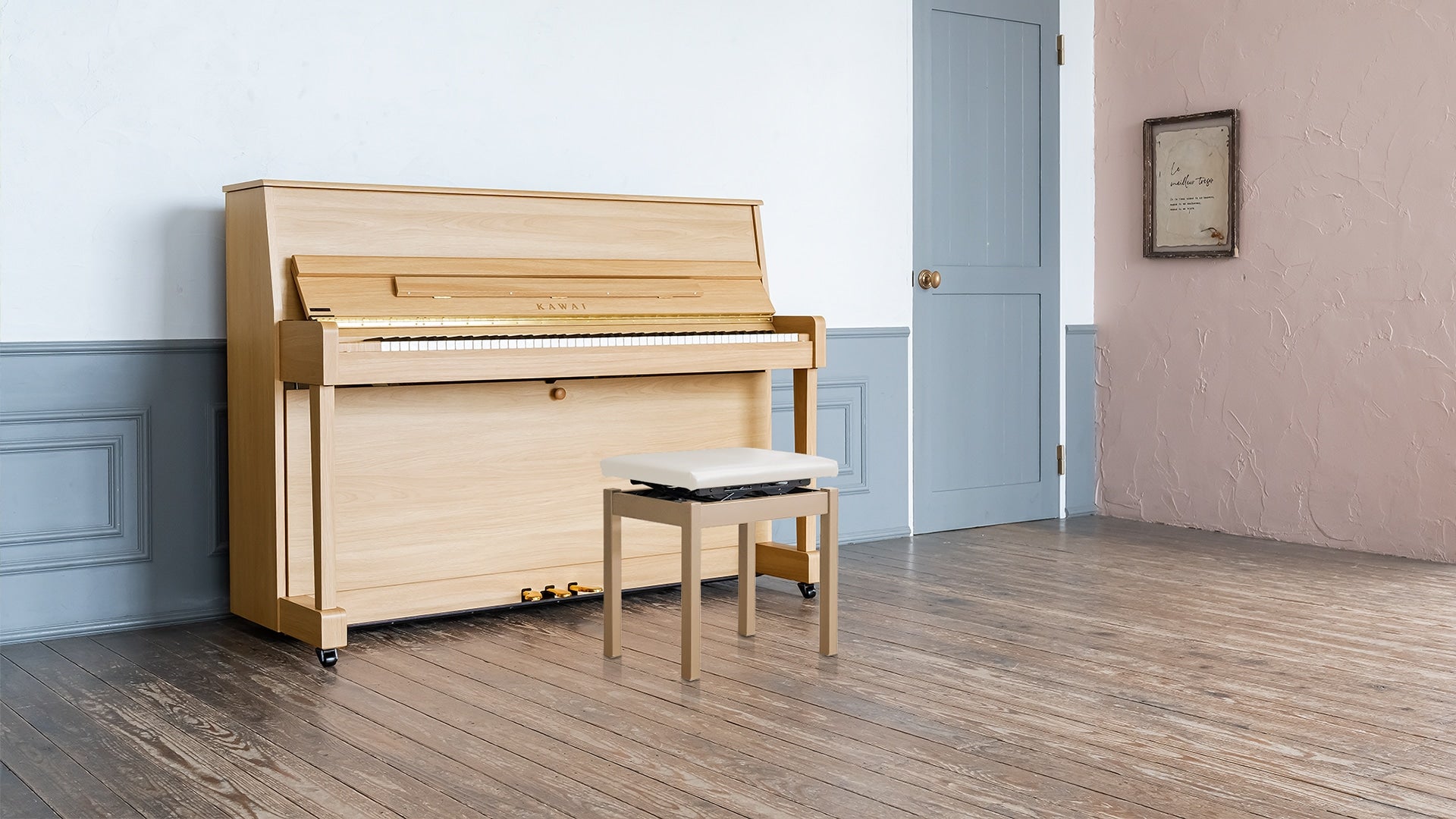 Experience the harmonious blend of tradition and modernity with the Kawai NF-15, an acoustic upright piano that seamlessly integrates into contemporary living spaces.Â